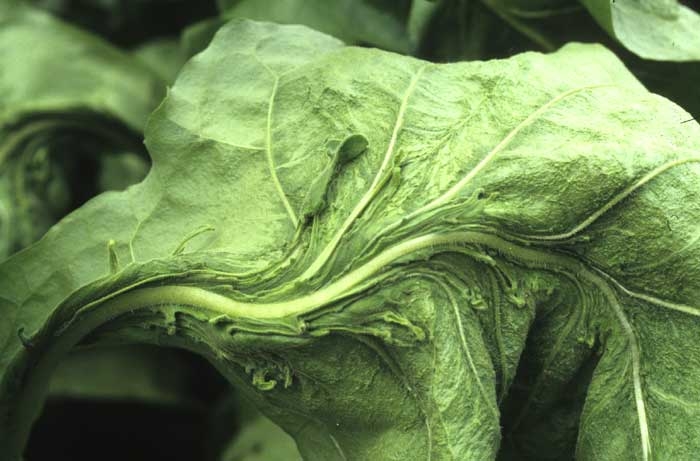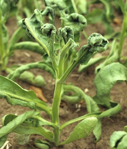 More specifically, the abnormality referred to as "ruffle leaf" results in leaves that tend to curve downward. Those near the apex may consist of a midrib only, giving them an appearance of a rat tail. There are many enations (figure 2) of variable length and width, located along the veins producing ruffle-like appearance. The flowers of these plants exhibit morphological variations.