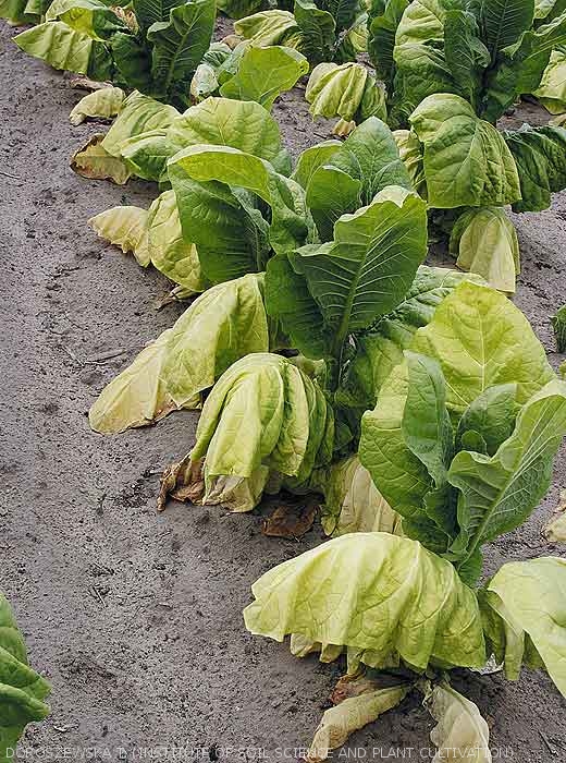 In general, considerable damage is observed in poorly drained fields, with heavy soils and during a period of hot weather which favours anaerobic micro-organisms; this accelerates plant transpiration and therefore wilting. In fields where asphyxia takes place, it will be necessary to drain the soil and plant tobacco on relatively high ridges.