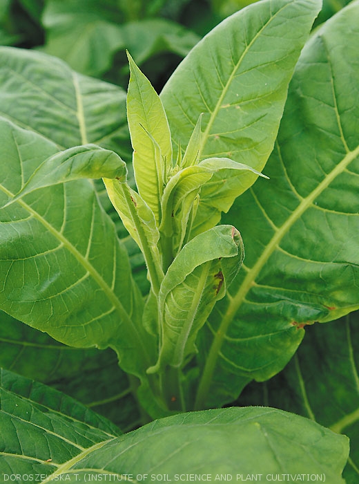 Tobacco producers are often faced with sudden wilting of newly developed or intermediate leaves (figures 1 and 2). Later on some of these leaves may become partially yellow and necrotic.