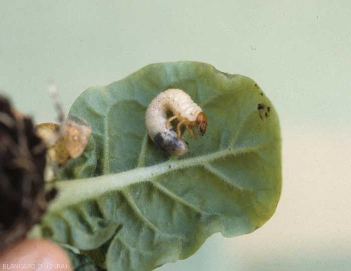 - cutworms, caterpillars of various moths (Agrotis spp ...) that perforate, eat and cut the stem at the soil level are also very frequently observed. They are often present in the soil around plants (figure 2);