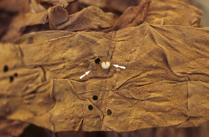 Several insects may attack tobacco leaves during curing and storage.
