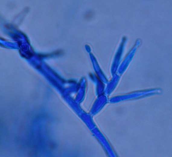 This Fusarium sporulates profusely on altered tissues where nearby, sporodochia (figure 1), macroconids, microconidia, and chlamydospores can be formed. This potential inoculum represents major sources of contamination at the origin of the very easy dissemination of this fungus. It is dispersed via wind, splash and runoff of water, equipment and tools. Note that during tillage, the inoculum is redistributed in the plot and disseminated by the tillage equipment.
