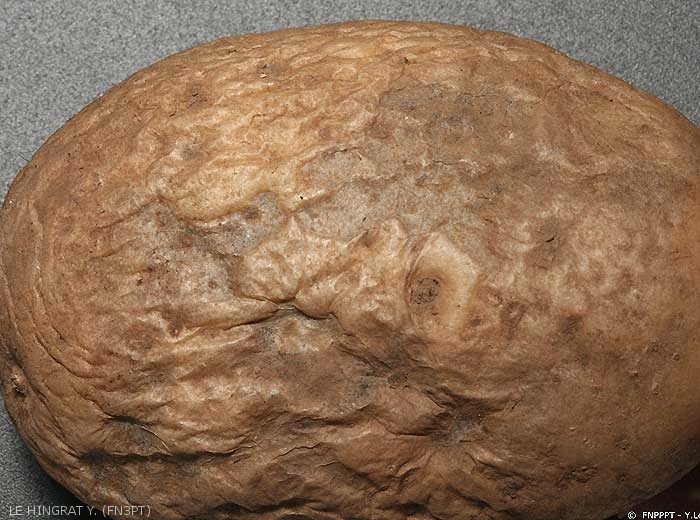 When tubers have been subjected to cold temperatures, development of deep sunken lesions are sometimes associated with dry rot of the underlying tissues (photo 8).