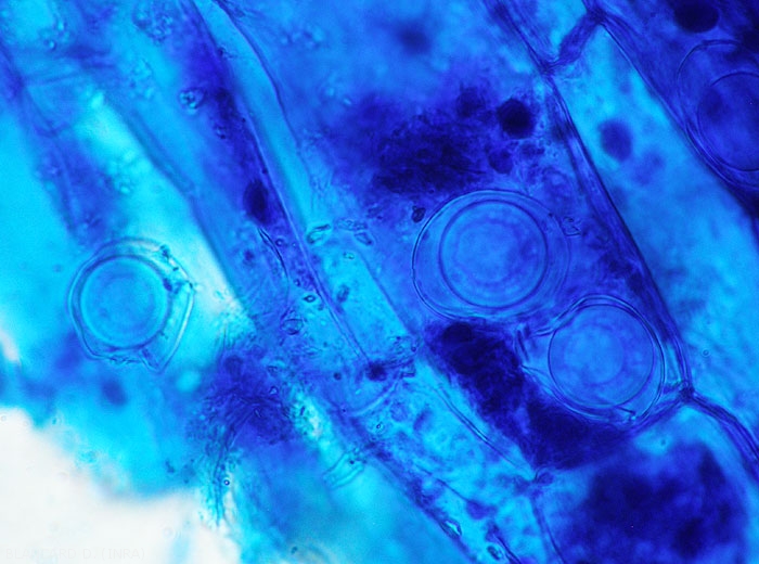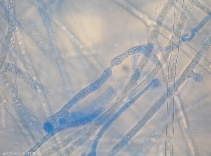 - Infection : directly penetrate the epidermal tissues of young roots and fruits, but also through wounds. They rapidly invade the tissues thanks to their non-chambered mycelium (figures 1 and 2) progressing between and within the cells.