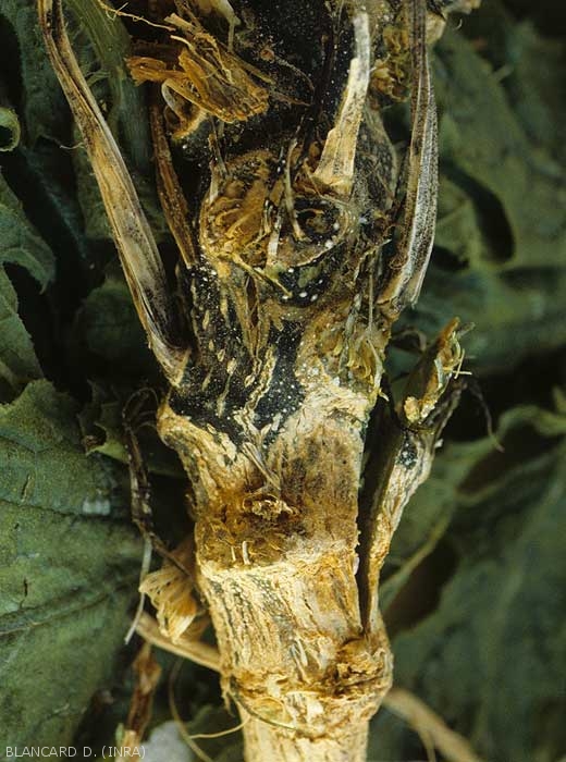 Signs : Presence of tiny and numerous brown to black globular masses on the lesions. These are the fruiting bodies of this fungus: perithecia and pycnidia visible under a magnifying glass (figures 6 and 7).