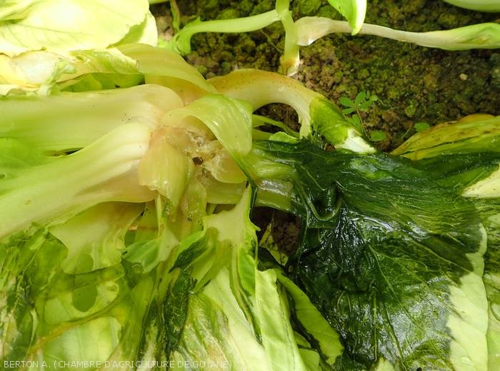 Brown to blackish rot of the lower part of cabbages (figures 2 and 3.