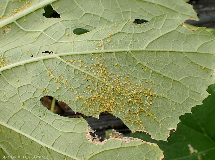 - Very frequent and very damaging on vegetable crops, especially in sub-tropical, tropical and equatorial production zones, developing fairly frequently on plants in the form of colonies.