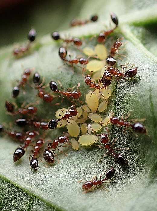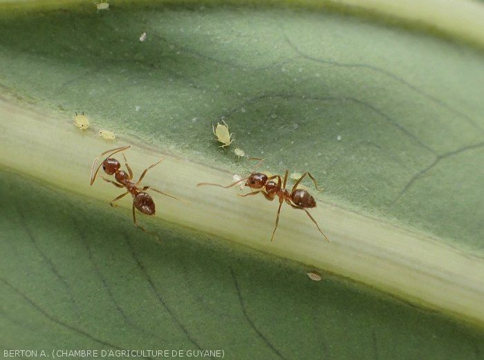 - Dispersal : possible via the wingless which moves on the plants and visits the neighboring plants. As soon as the adults appear (during pullulations), they disperse in the crop or in nearby plots. Plants and workers can contribute to their spread.