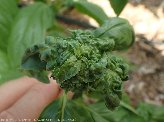 - Chlorotic pitting, various deformations of the young leaves which are rolled up and more or less blistered following the nutritional bites of aphids (figures ).