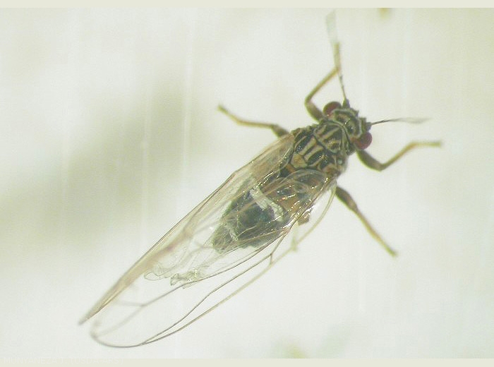 The strains of Ca. L. solanacearum which have been described on Solanaceae (A and B) and are responsible for Zebra chip disease on potato and their vector psylla, Bactericera cockerellii (photo 1) are on the A1 list of EPPO (quarantine organisms, which are absent of the EPPO region).