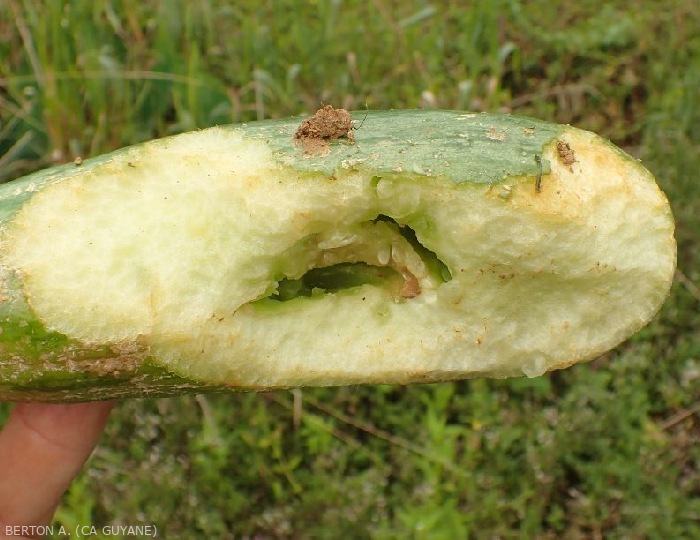 • Severe damage from rachis was noted on cucumber fruit in Cacao (Guyana) (Figure 10).