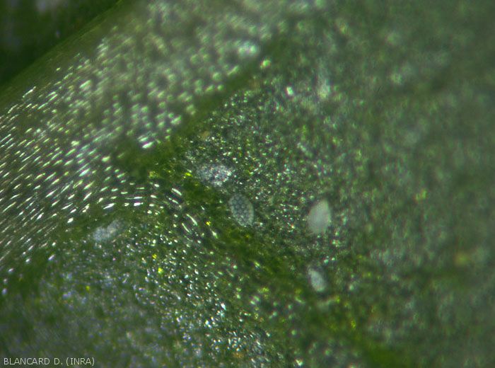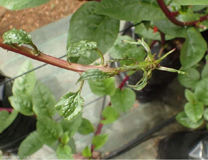 - Localized especially at the level of the apex and the buds, and on the underside of the leaves.