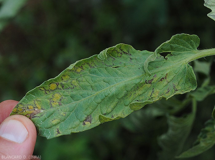 - Leaflets, rather chlorotic, gradually taking on a bronze hue (figure 7-tomato).
