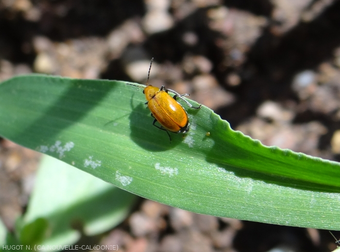 - These insects belong to the Chrysomelidae family and the Galerucinae subfamily . Note that the two beetles of the genus Candezea were associated only a short time ago with the genus Monolepta.
