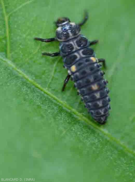 After overwintering, the 7-spotted ladybird becomes active at the end of winter and in April/May lays a large quantity of yellow eggs (500 to 1000) distributed among colonies of aphids. Adults die in the spring shortly after mating and egg laying. Once out of their egg, the larvae become active and devour a large number of aphids to manage to develop rapidly in 15 to 20 days before attaching themselves to plants to turn into chrysalises (or nymphs) which will give birth in 7 days. adult ladybugs. Depending on the species, there may be one or more generations per year. For example the seven-spotted lady beetle ( Coccinella septempunctata ) establishes only one generation per year.