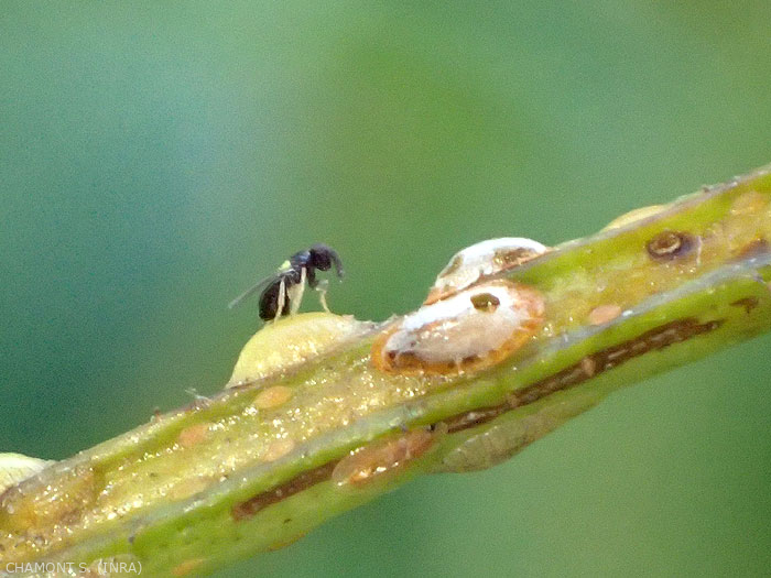 The Coccidae or lecanins are parasitized by two families of Chalcidoidea hymenoptera: Encyrtidae (genera Metaphycus and Blastothrix ) and Aphelinidae (genus Coccophagus , figures 3 and 4).