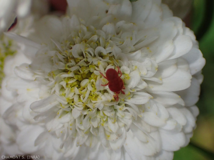Mites are distinguished from spiders by their size (<1 mm). The adults have four pairs of legs and the larvae only three.