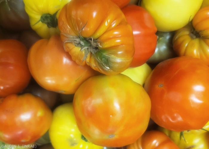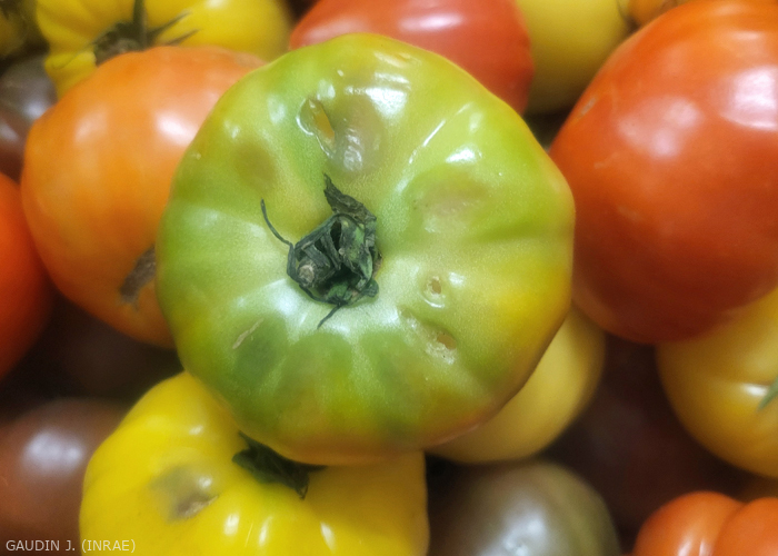 - Fruit : irregular ripening, sometimes rough yellow or brown spots and stripes, necrosis.