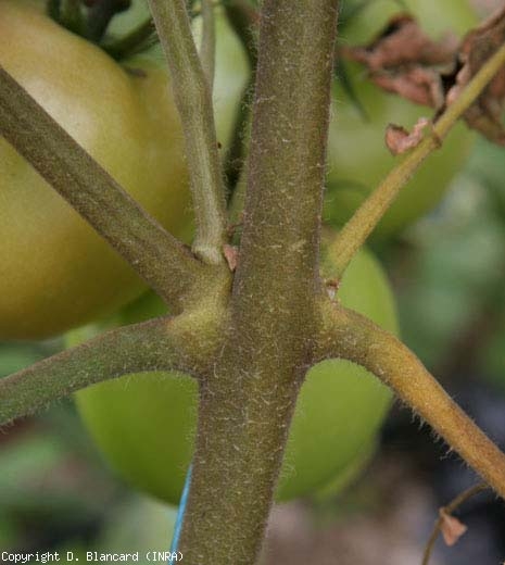 Finally, the various organs of the tomato colonized by the mite Aculops lycopersici tend to take a rather characteristic bronze tint, in particular the stem, the peduncles and the petioles (figure 3) . Leaflets and fruits are also affected; We advise you to consult the chapter Leaf coloring anomalies in order to have more details on this pest.