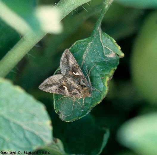 The aerial organs of the tomato are liable to be devoured by the stage caterpillar of several more or less polyphagous Lepidoptera. These insects belong to various families, in particular the Noctuidae . Among these are Autographa gamma (L.) (figure 1), Chrysodeixis chalcites (Esper), Helicoverpa armigera (Hübner), Lacanobia oleracea (L.) and Spodoptera exigua (Hübner). We find these moths ( loopers ), and many others, in many production areas around the world where they sometimes cause considerable damage in field crops, as well as under cover.