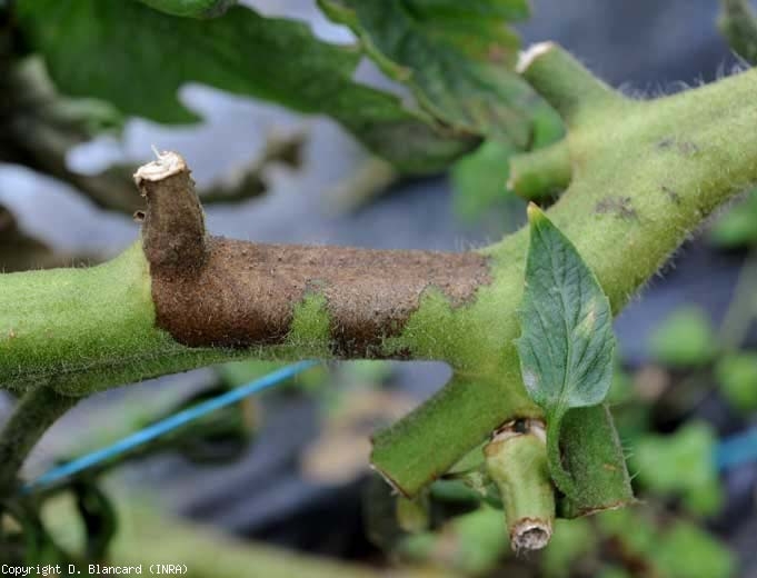 Of canker lesions more or less extended, brown , irregularly-shaped, are visible on the rods (Figure 5) and petioles . They often encircle them more or less. Similar brownings can be observed on floral bouquets; they are at the origin of the fall of many flowers.