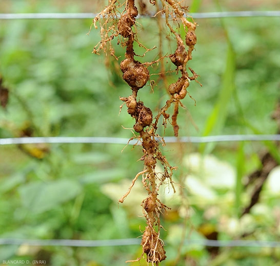 The Meloidogyne spp. are very polyphagous and attack very many plants, cultivated or not (more than 5500 plants), on which they ensure their multiplication and their conservation: chrysanthemum, carnation, rose bush, kiwi, peach, banana tree, pepper, eggplant, lettuce, melon, cucumber, artichoke, carrot, celery, bean, sweet potato