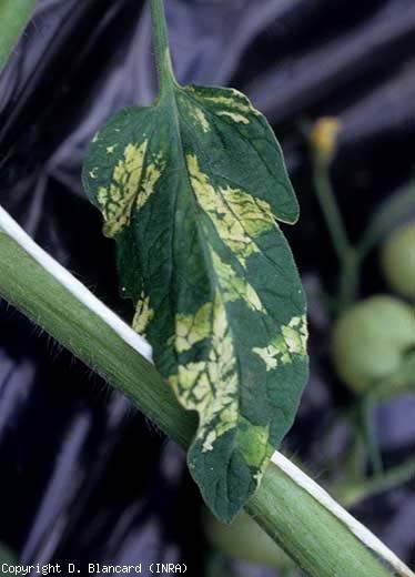 The expression of symptoms seems to be strongly influenced by climatic conditions, in particular by temperature and light in the shelters. Thus, symptoms are easily observed from fall through spring, and tend to disappear in warm, bright periods. The disease expresses itself differently depending on the stage of development of the plant and the cultivar. Note that it can go completely unnoticed, despite the infection of many plants, or appear on a layer of leaves and fruits.