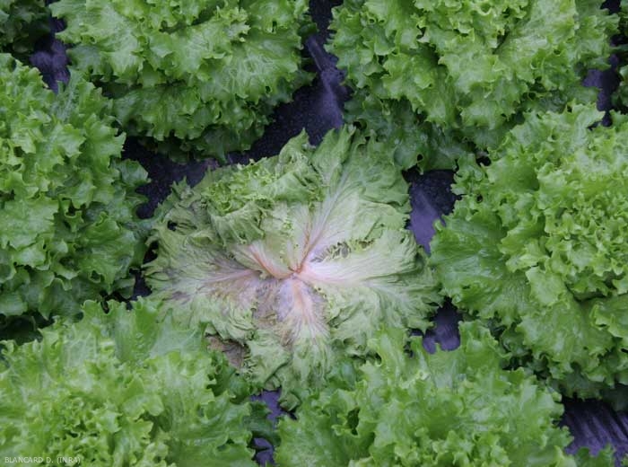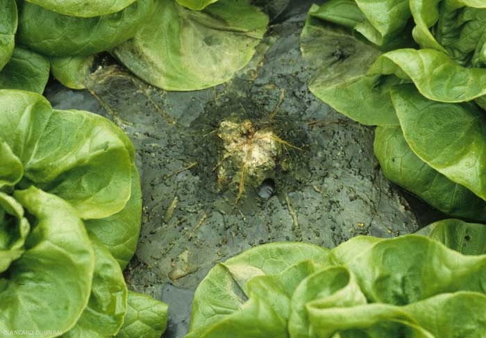 Slow and late wilting of lettuce has also been reported in the past, following attacks by Sclerotinia minor deeper in the soil. The latter caused a brown alteration of the taproot, 5 to 10 cm below the soil surface.