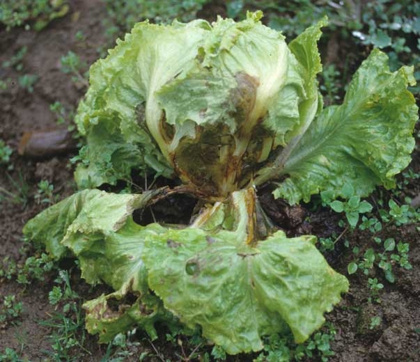 This fungus is most feared for the symptoms it causes on adult plants. The first symptoms are especially visible as the harvest approaches on the leaves in contact with the ground . Their expression may be somewhat different depending on the types of salad. On lettuce and escarole , we can observe: