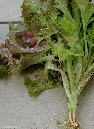 On the lower leaves of the crown of diseased lettuce, Verticillium dahliae produces yellowing that begins at the periphery of the leaf blade and becomes more or less sectoral. The leaves eventually wilt partially or completely and necrode. At this stage, they remain strongly adherent to the apple. Microsclerotia of the fungus are sometimes visible along a few veins.