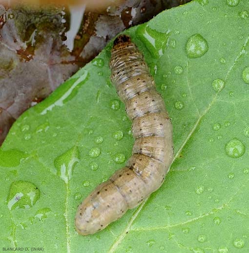 Caterpillars 3.5 cm long, fleshy, variable in color, greyish to greenish, topped dark spots or bands (figures 4 to 7 |