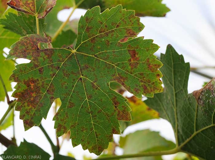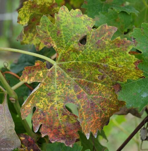 Some grape varieties showing partial resistance to downy mildew can express symptoms with different facies. To see the particular forms that mildew can take on resistant grape varieties, consult the website of the national observatory of resistant grape varieties OSCAR .
