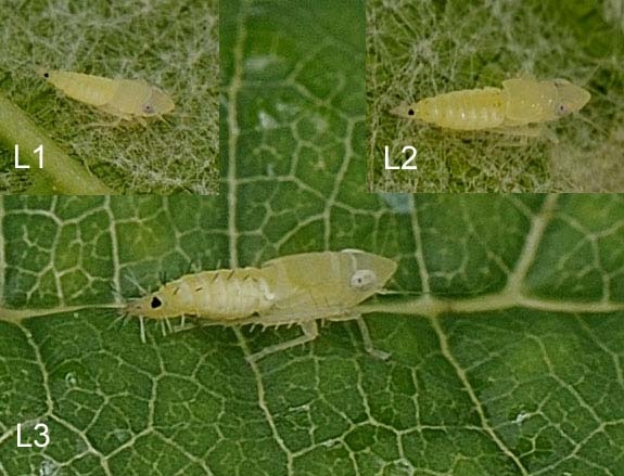 It should be noted that the larvae of stage L1 of should not be confused Phlogottetix cyclops (figure 6) with those of Scaphoideus titanus .