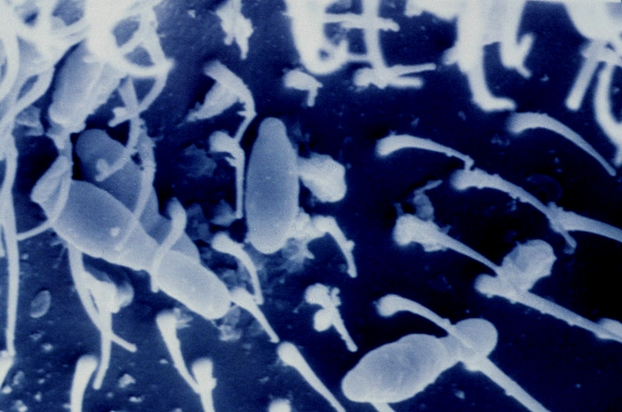 Close to the maturity of the grape, the adults (figure 1) are attracted by the volatile odors given off by the berries. These odors are released following parasitic or accidental injuries to the grapes. The seeps are used as food for the fruit flies which, at the same time, bring on their body (figures 2 and 3) and reject during their nutrition various microorganisms including those associated with acid rot. The females then lay their eggs fertilized on the berries.