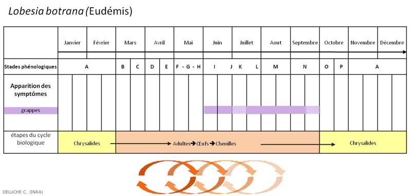 Synoptique de développement de Lobesia botrana sur vigne