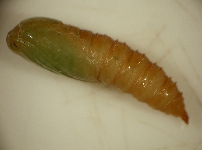 • The larvae are around 15mm long and have a dark green head with a body that can range from light green to dark green. It is sometimes possible to discern whitish stigmas. The caterpillar is very lively to the touch like that of the Eudemis.