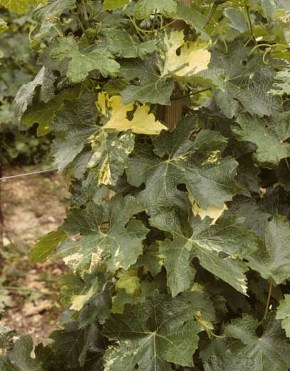 This genetic condition causes a change in the coloring of the organs of the vine, in particular the herbaceous parts and the berries. We mainly observe discolorations, the organs showing well-demarcated sectors of yellow to white color contrasting with the natural color of the other parts which are not affected (figures 1 and 2).