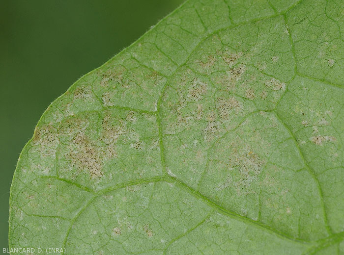 - Silver, even suberized, more or less extensive alterations developing on the fruits (figure).