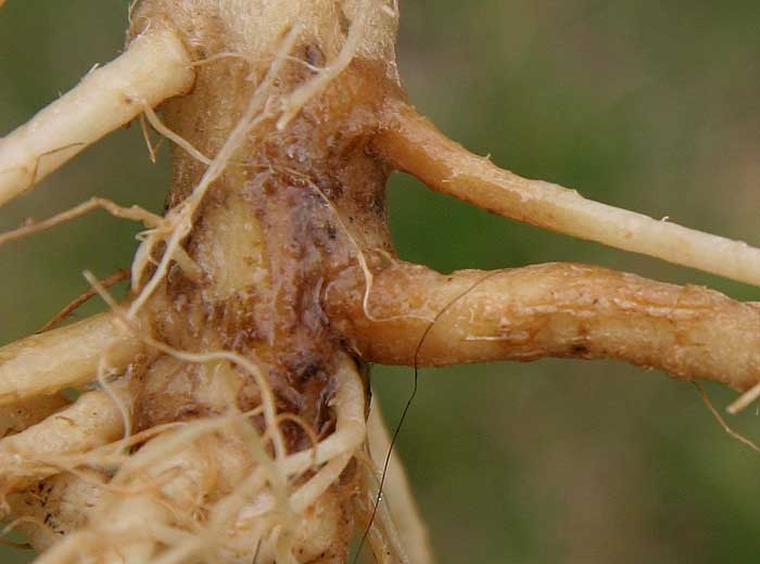 Thielaviopsis basicola is a soil fungus which causes damage mainly to the roots of melon. It gradually colonizes them, initially causing discreet small alterations of light brown color. Subsequently, they expand and take on a darker shade (Figures 1 to 3).