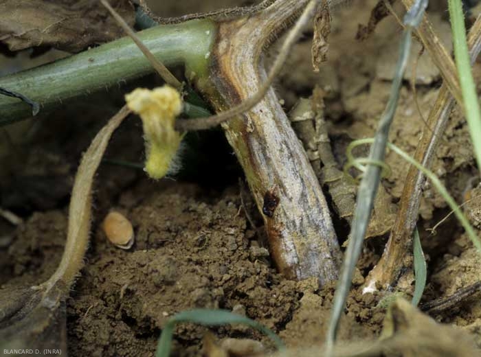 This fungus penetrates the melon via its root system, at the level of various wounds (insects ), but especially from the zones of emission of the new roots which constitute doors of entry favorable to the contaminations. Subsequently, it gains the xylem and can thus invade the vascular system of the melon, both in its aerial part and underground.