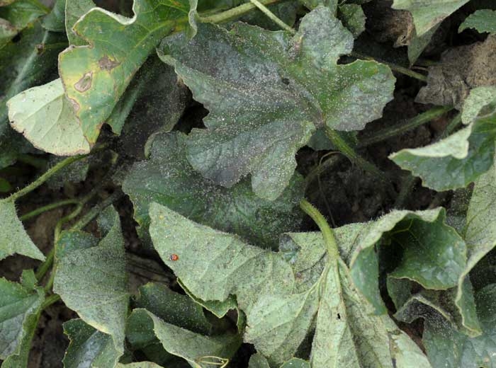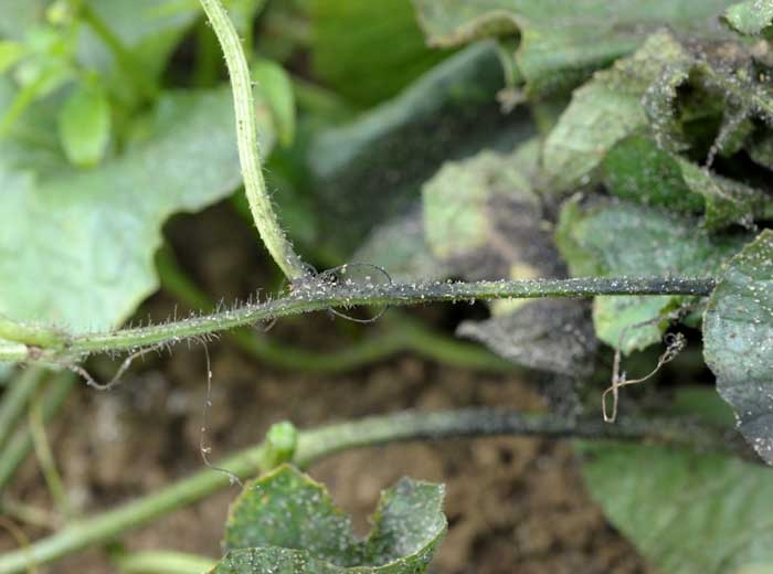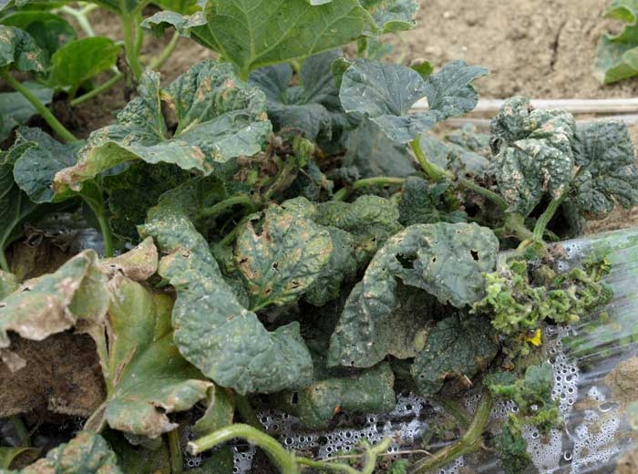 Nutritional punctures are the cause of chlorotic punctures and can deform young leaves which are rolled up and more or less swollen (Figures 1 to 3). A reduction in the growth of young shoots and even plants can be observed (Figure 4). In addition to aphid colonies, white moults and the presence of honeydew are often observed on the surface of the aerial organs of the melon, on which grows sooty mold (figures 6 to 8). It should be remembered that the latter can have several consequences, in particular a reduction in photosynthesis and leaf respiration and the soiling of the fruits thus rendered unmarketable.