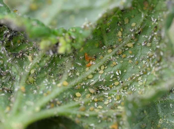 - Dispersion in the crop : a few plants scattered throughout the crop on which aphid colonies quickly gain importance constitute the first outbreaks. First wingless, aphids start by visiting neighboring plants. As soon as the adults appear (during outbreaks), they disperse in the crop or in nearby plots. Plants and workers can contribute to their spread.