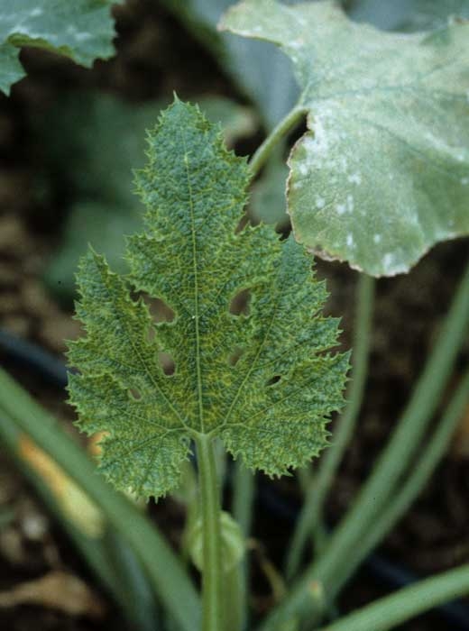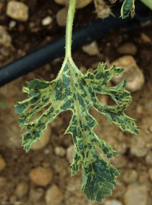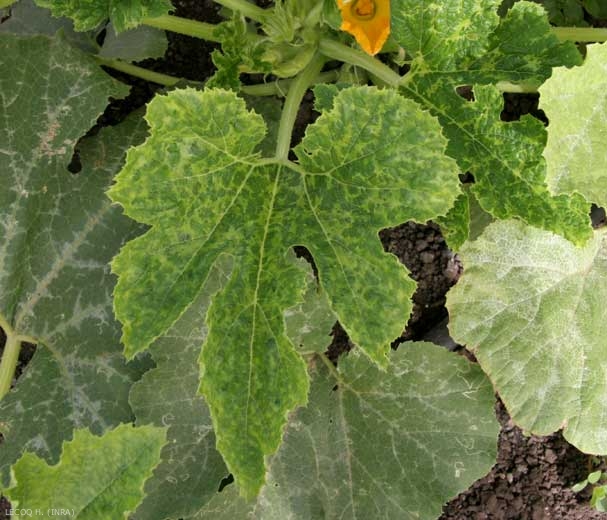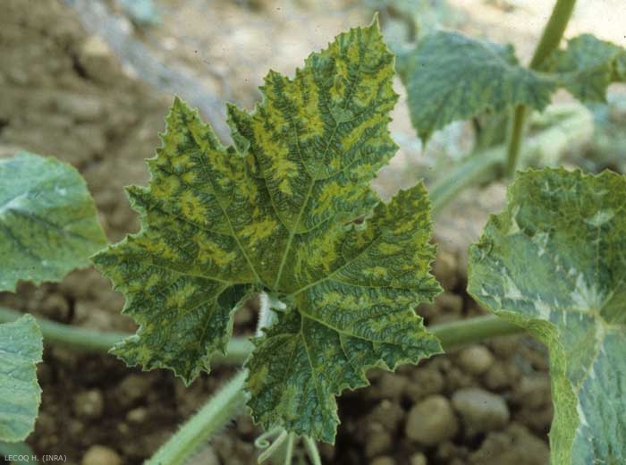The courgette ( mosaic virus Zucchini yellow mosaic virus , ZYMV), due to the many strains reported from the first description of this virus, causes quite different symptoms. In addition, these can vary in intensity depending on the season (they are usually more severe in summer), the species or variety infected. It should be noted that more accentuated symptoms may be observed in the event of co-infection with other viruses (synergy), and in particular with the cucumber mosaic virus (CMV). ZYMV probably causes the most dramatic symptoms in zucchini (Figures 1 and 7), and it is often in this host that this virus has been initially reported in many countries.