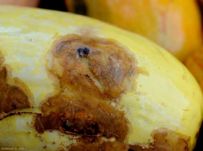 Colletotrichum orbiculare can be preserved during the winter in the ground, in particular on plant debris, or from straw manure persisting for up to 5 years on the latter. The stromatic masses (figure 1), which it forms on the fruits, represent a certain form of preservation.