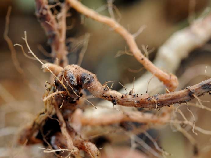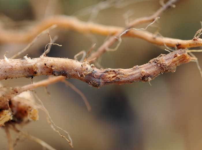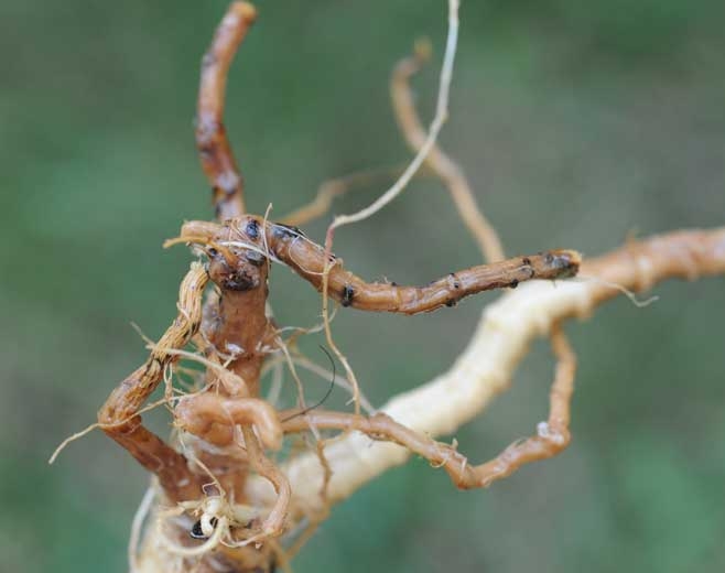 Another example of a root system affected by <i> <b> Phomopsis sclerotioides </b> </i> (black root rot)