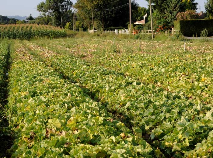 On this melon base, we can clearly see several chlorotic and withered leaves. <i> <b> Phomopsis sclerotioides </b> </i> (black root rot)