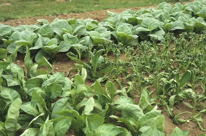 Tobacco, like many crops, may show genetic abnormalities which can usually be observed on the plant by modified habit, colour and shape of some of its organs. Thus, several genetic abnormalities are reported in the Solanaceae in literature. These can be, for example, an ability to produce deformed leaves which are strangely curled along their length or width, as is the case on the tobacco plant shown in figure 1.