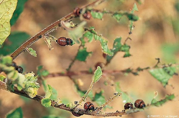 The larvae start to devour the leaves which carry them, then move onto the neighbouring leaves up to the top of the plant. They are voracious and they can rapidly defoliate a complete plant.