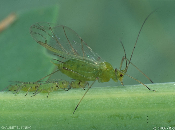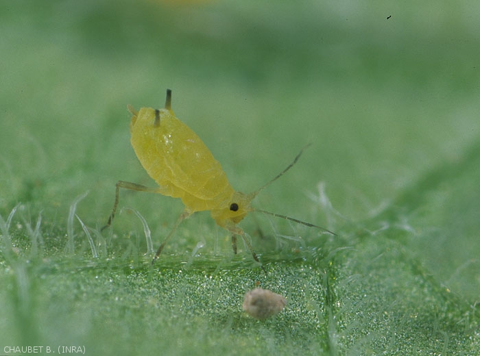 The itinerant aphid species, which can visit potato fields with high alate populations, can have a significant effect in the dissemination of non-persistent viruses such as PVY or PVA. However they are not involved in the transmission (persistent mode) of PLRV, because aphids need to remain for quite a long time in the crop before they become viruliferous.