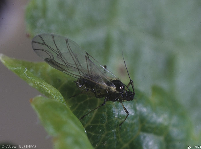 - Aphis fabae (the black bean aphid - photos 9 and 10), is a polyphagous species; it is very harmful to many vegetable crops. The subspecies A. fabae solanella may be found on potatoes, mainly in hot climates (Mediterranean and tropical).